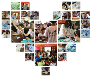 “渔音·育禾”海岛社区公益支教项目成员主要由数学与应用数学(师范)、物理学(师范)和其他专业热心公益支教的同学组成。自2007年开始,志愿者们发挥专业优势,与社区留守儿童、流动儿童、单亲家庭儿童、家庭经济困难儿童约定,每周末、每年暑期都组队前往虹桥社区文化礼堂为孩子们进行学业辅导、公益七彩课堂,用阅读和陪伴关爱孩子们成长,帮助他们树立起用知识改变命运的理想,用感恩的心面对每一次收获和成长。项目现已在社区中开展" 渔你童行,益起成长”教育关爱暑期社会实践、”智慧书包” 趣野夏令营、" 筑梦童行”暑期公益课堂等子项目,将公益支教服务的范围从定海区盐仓街道虹桥社区扩大到定海区临城街道金鸡山社区、绿岛社区;普陀区沈家门街道大蒲湾社区、茶湾社区、教场社区、中兴社区、东港街道兴普社区、灵秀社区等9个社区中,形成本岛和临近岛屿社区公益支教点面结合的公益支教网。