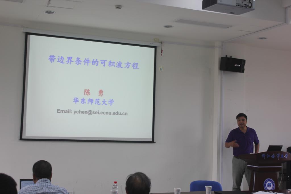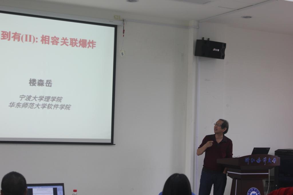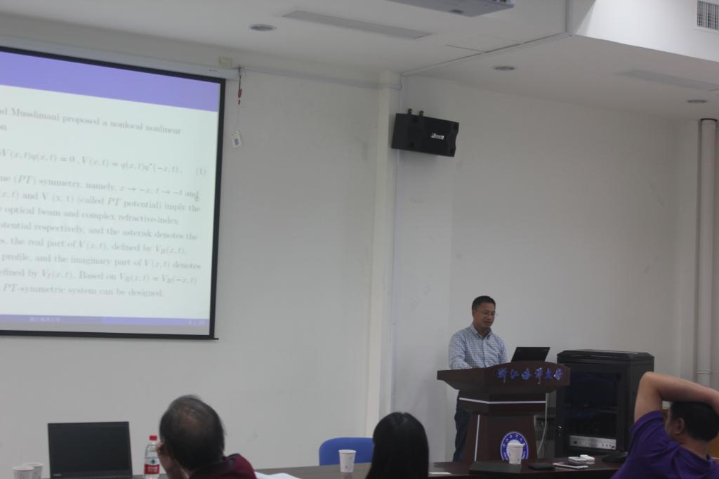 10月10日下午,华东师范大学博士生导师楼森岳教授,华东师范大学博士生导师陈勇教授和宁波大学李彪教授等人应邀来我校做学术报告。报告由数理与信息学院副院长顾沈明教授主持。